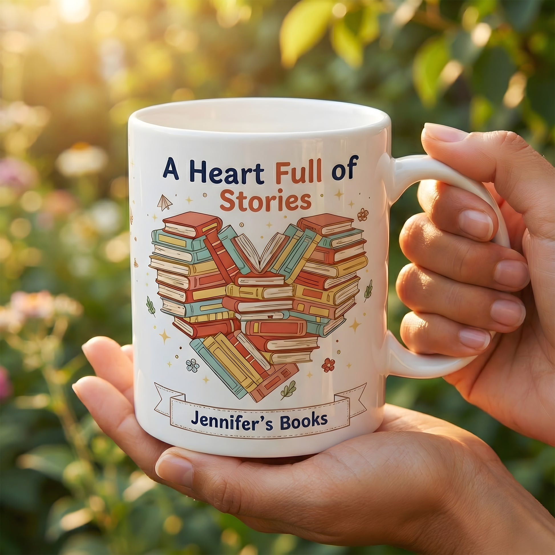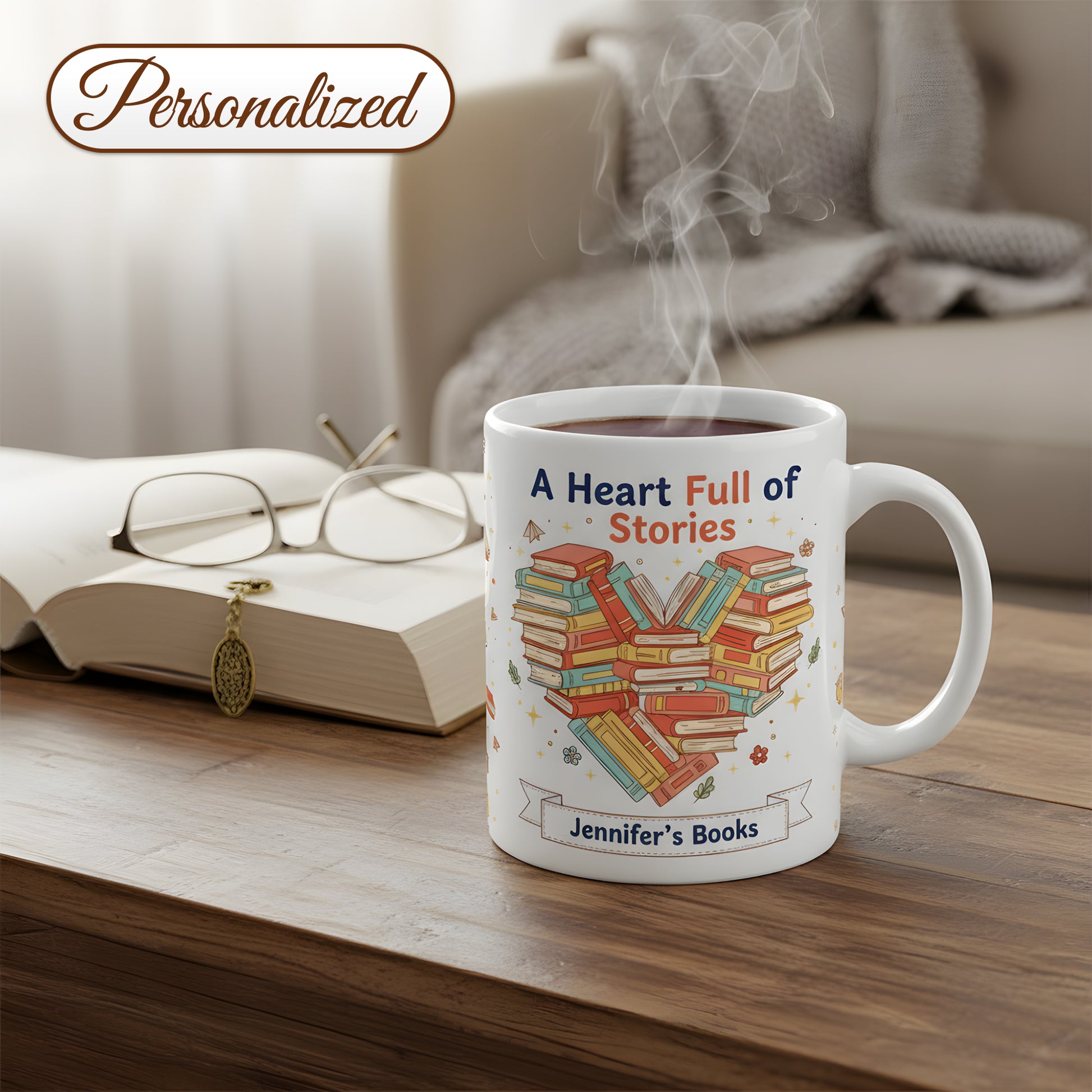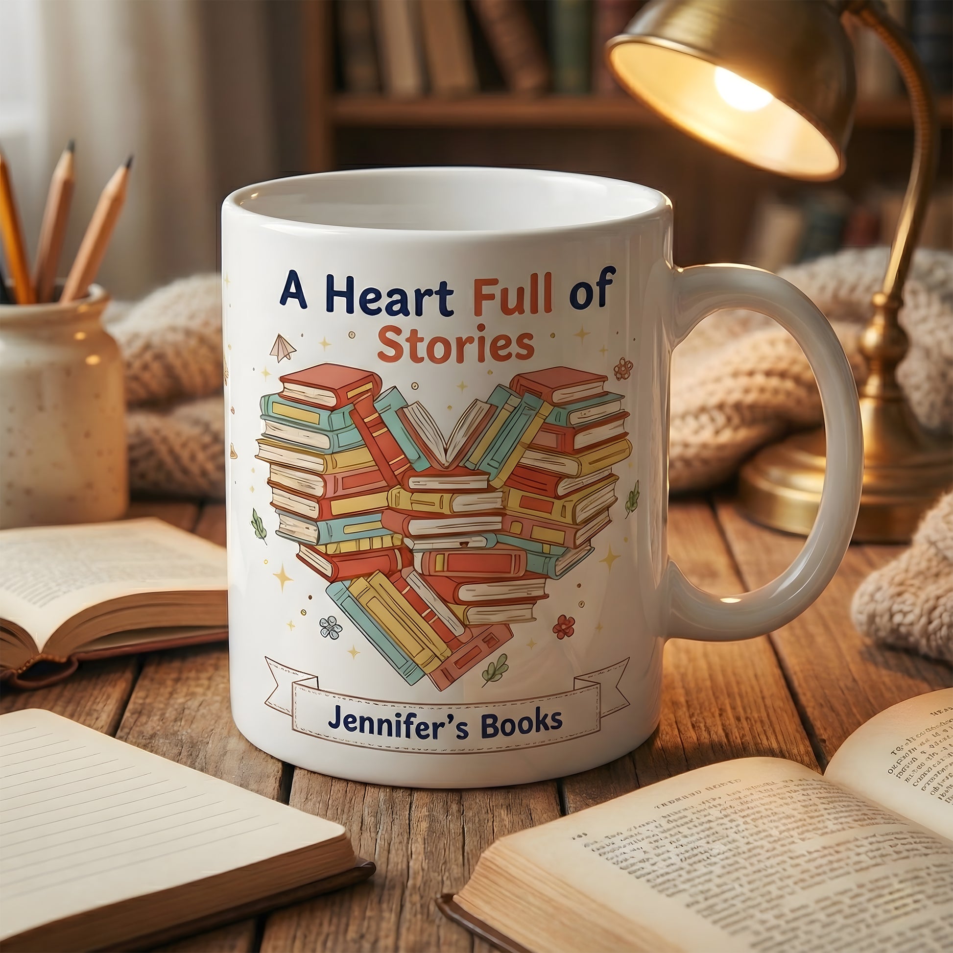 A Heart Full of Stories Personalized Mug – Custom Book Lover Coffee Cup – Inspirational Gift for Readers | Mug 85
