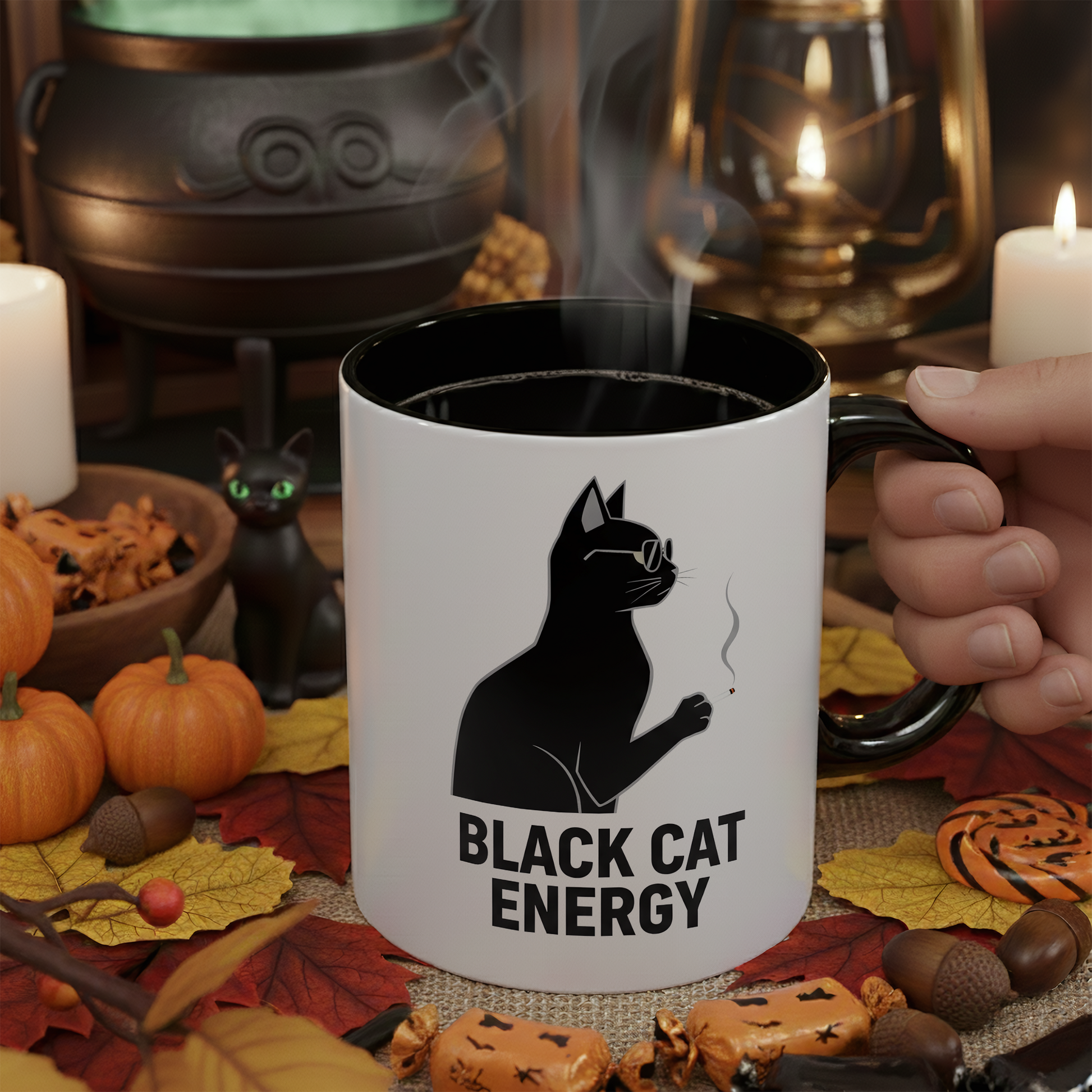 Black Cat Energy Mug – Funny Cat Lover Coffee Cup – Gift for Cat Mom, Cat Dad & Black Cat Owners |Mug 78
