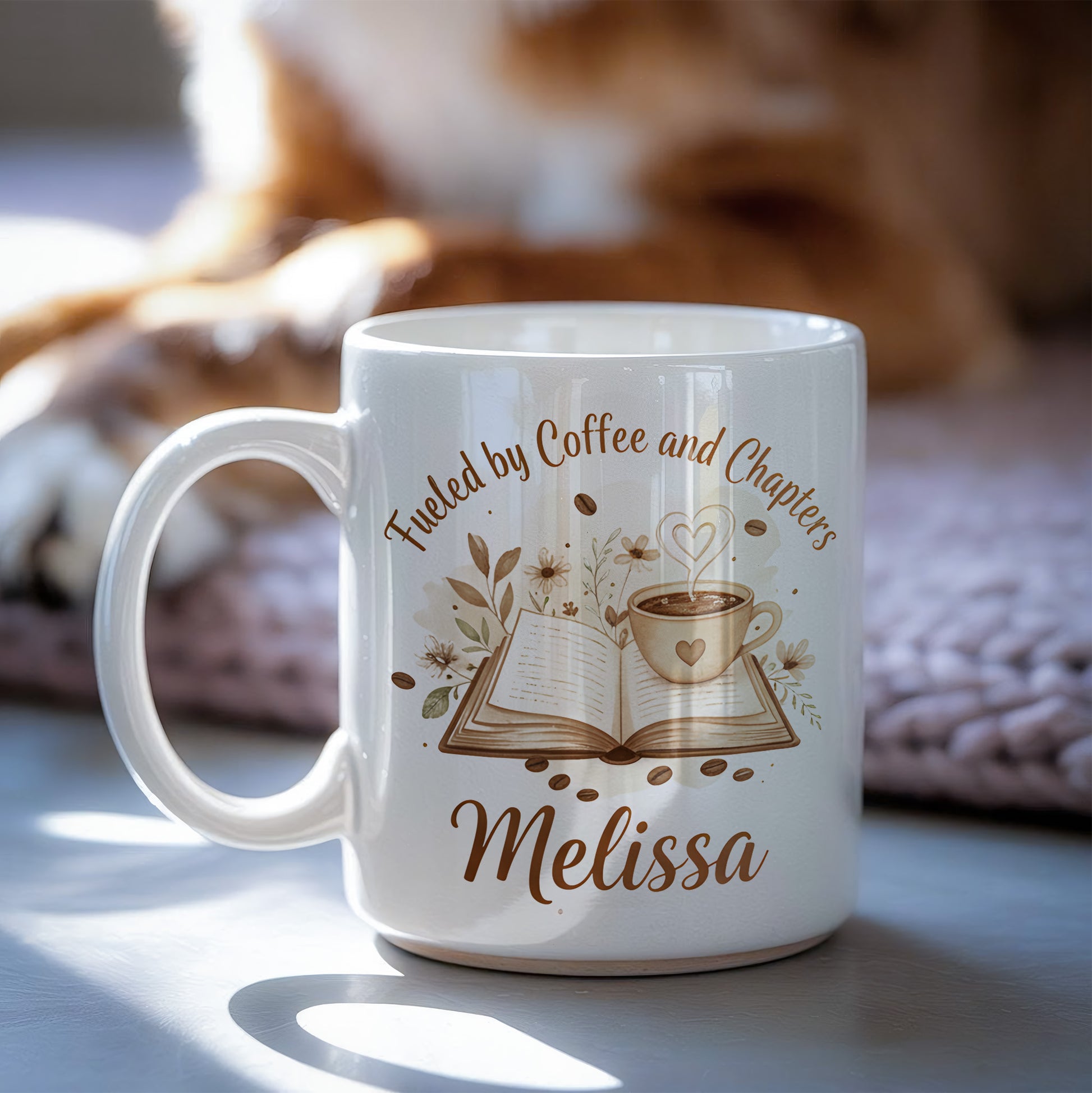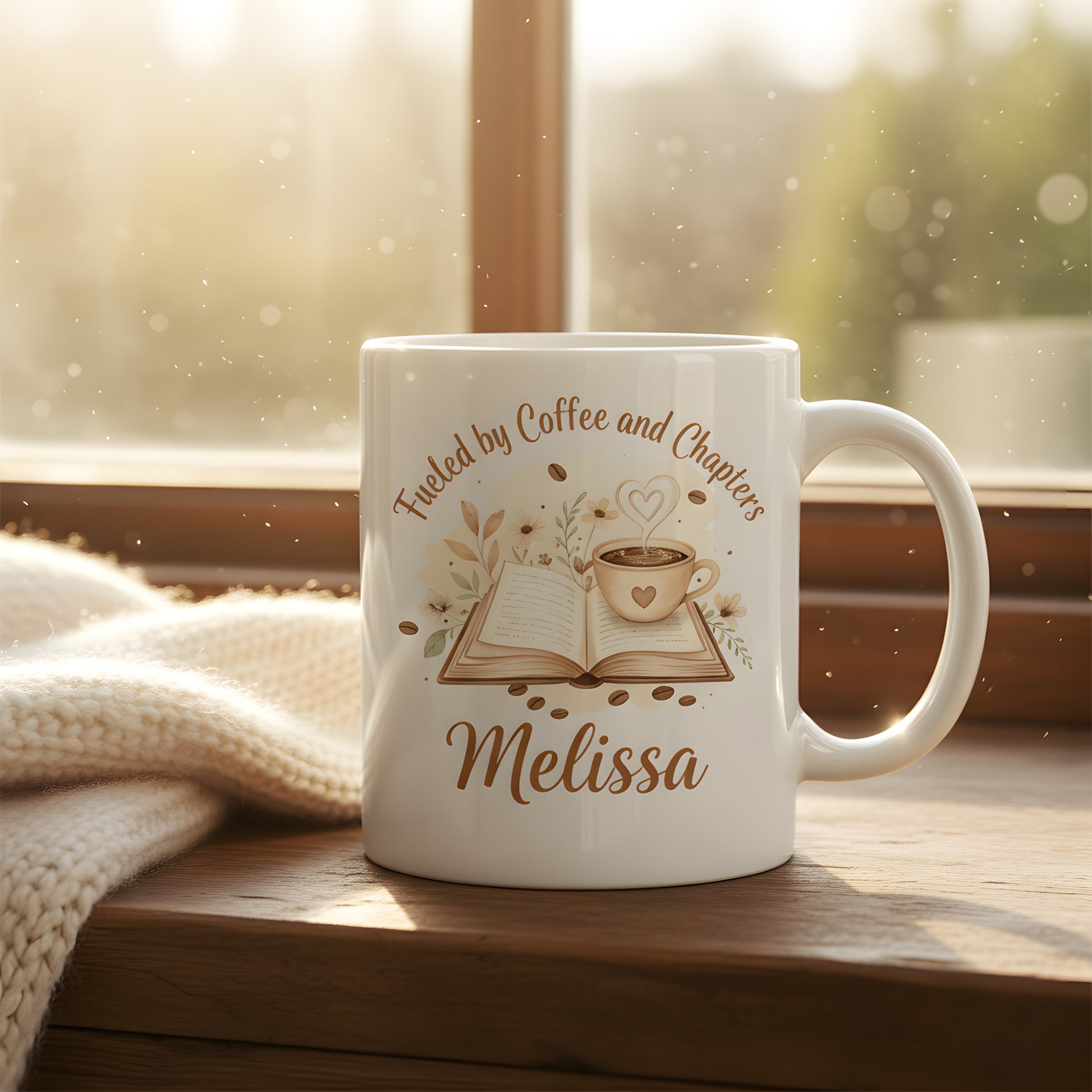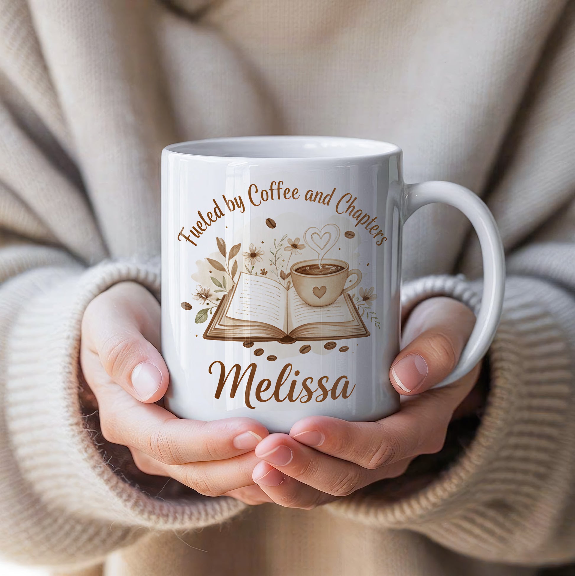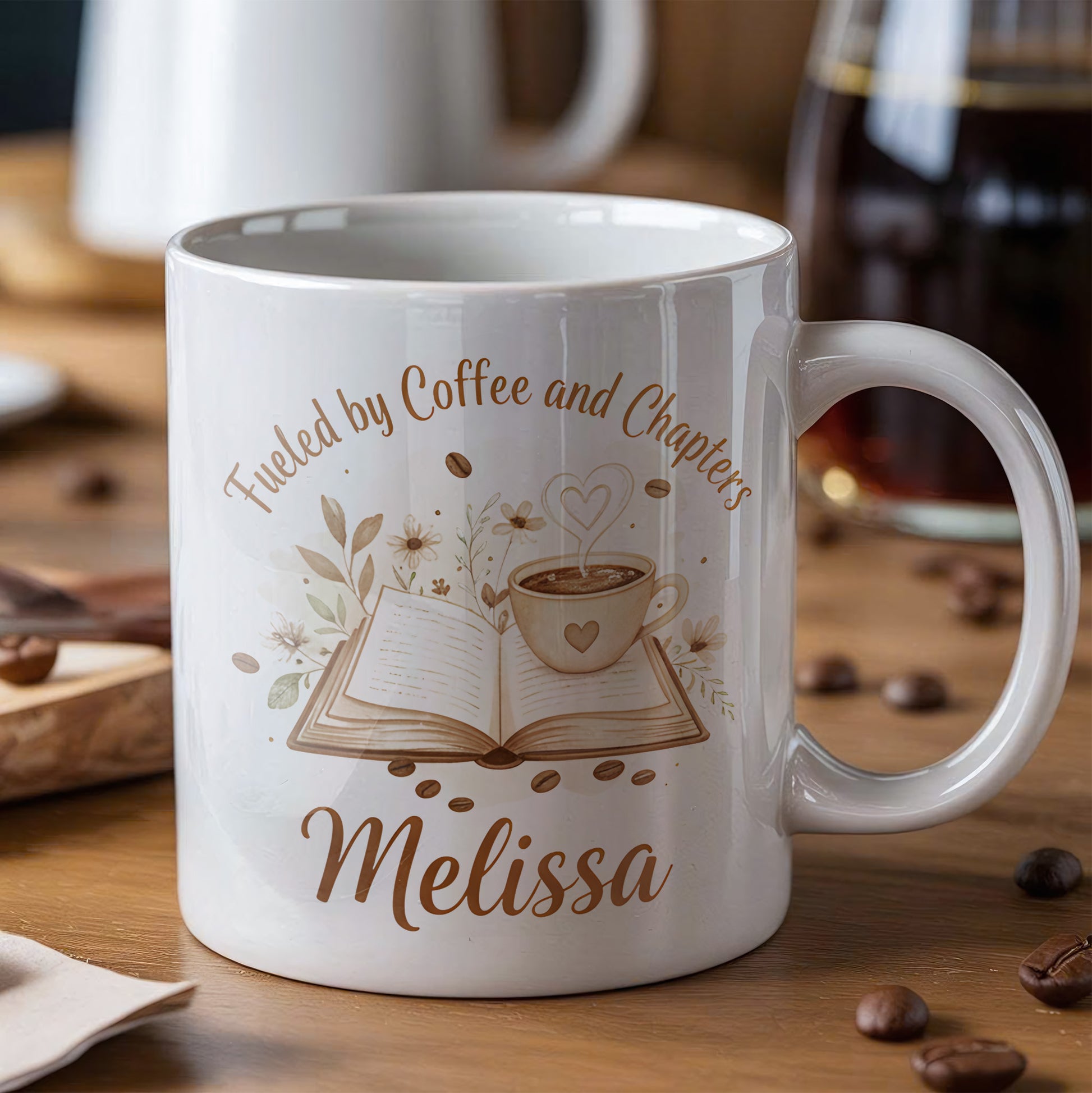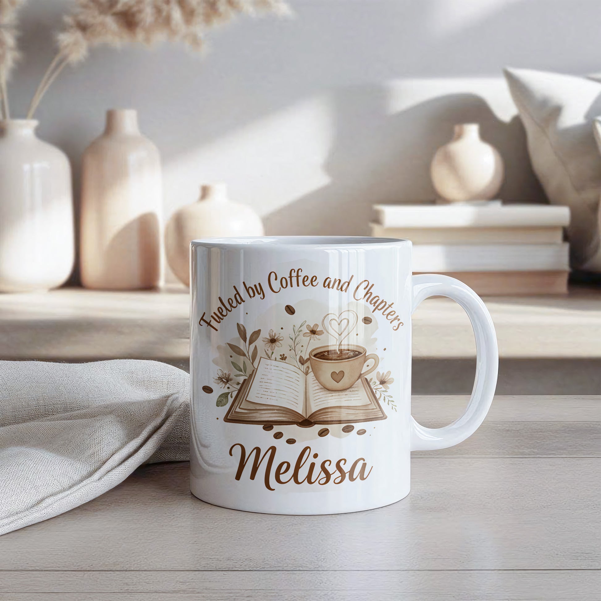 Personalize your "Fueled by Coffee and Chapters" mug today!