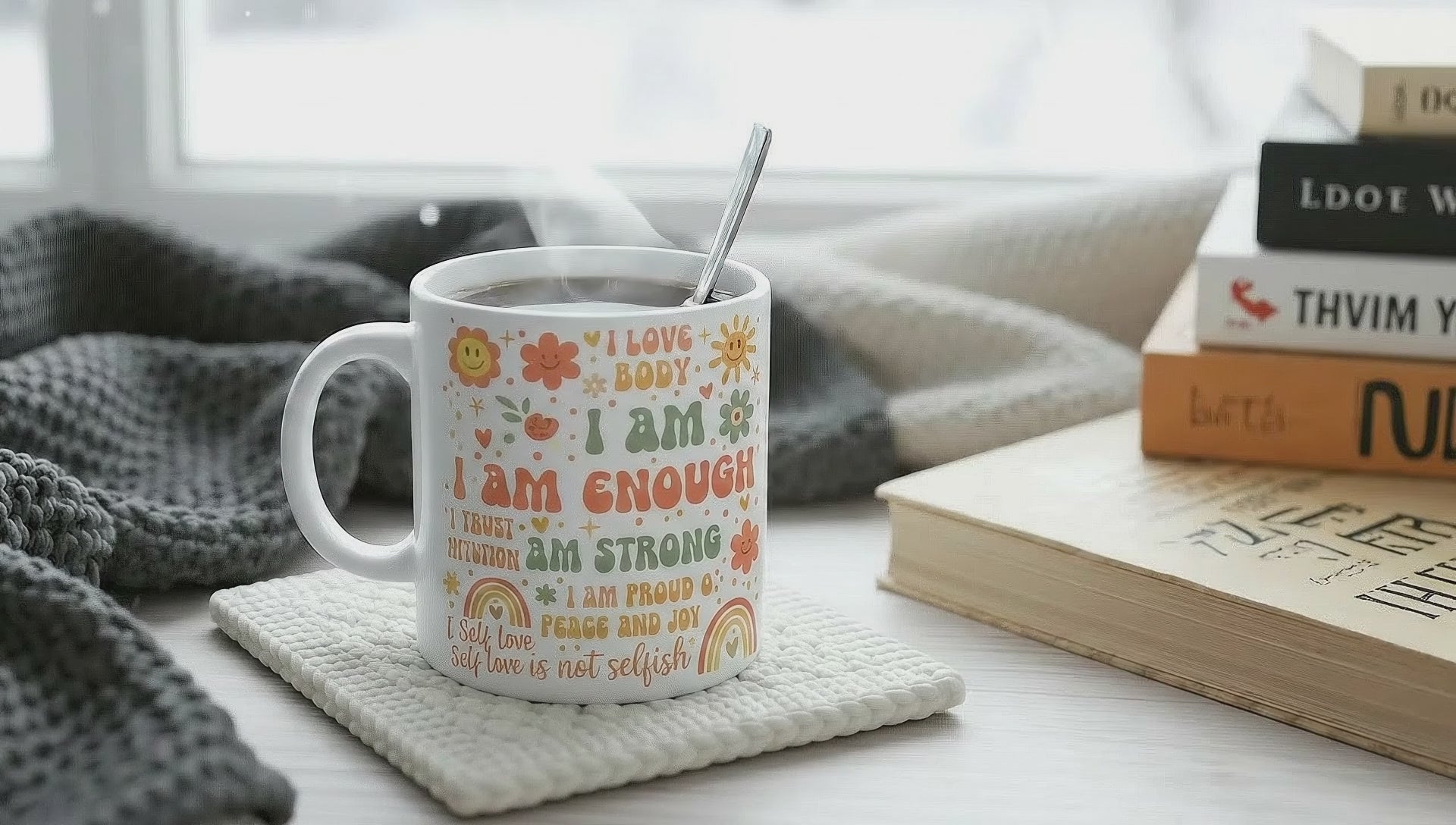 This “I Am Enough” Affirmation Mug is filled with powerful positive affirmations like: