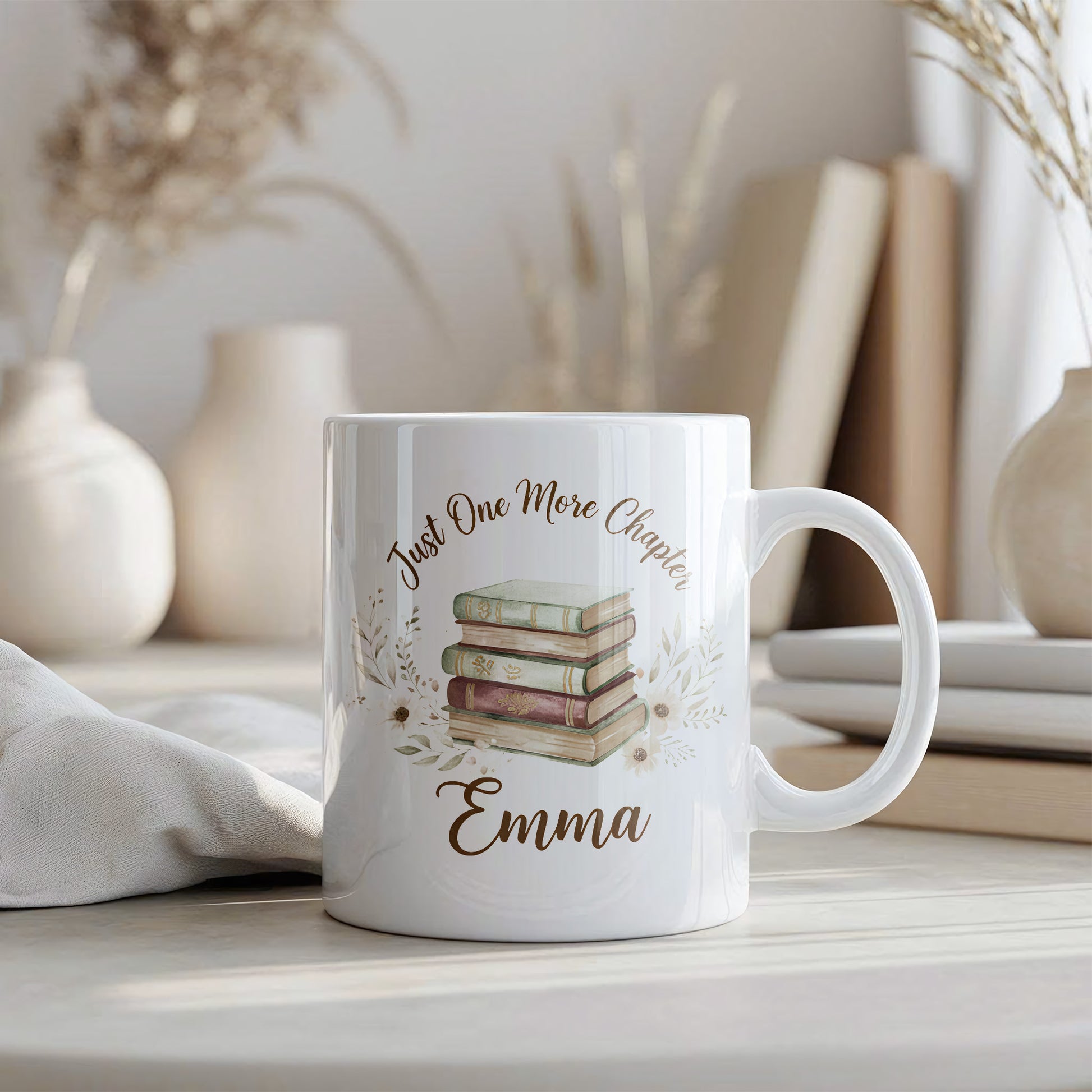 Personalize your “Just One More Chapter” mug today and make reading even more enjoyable!