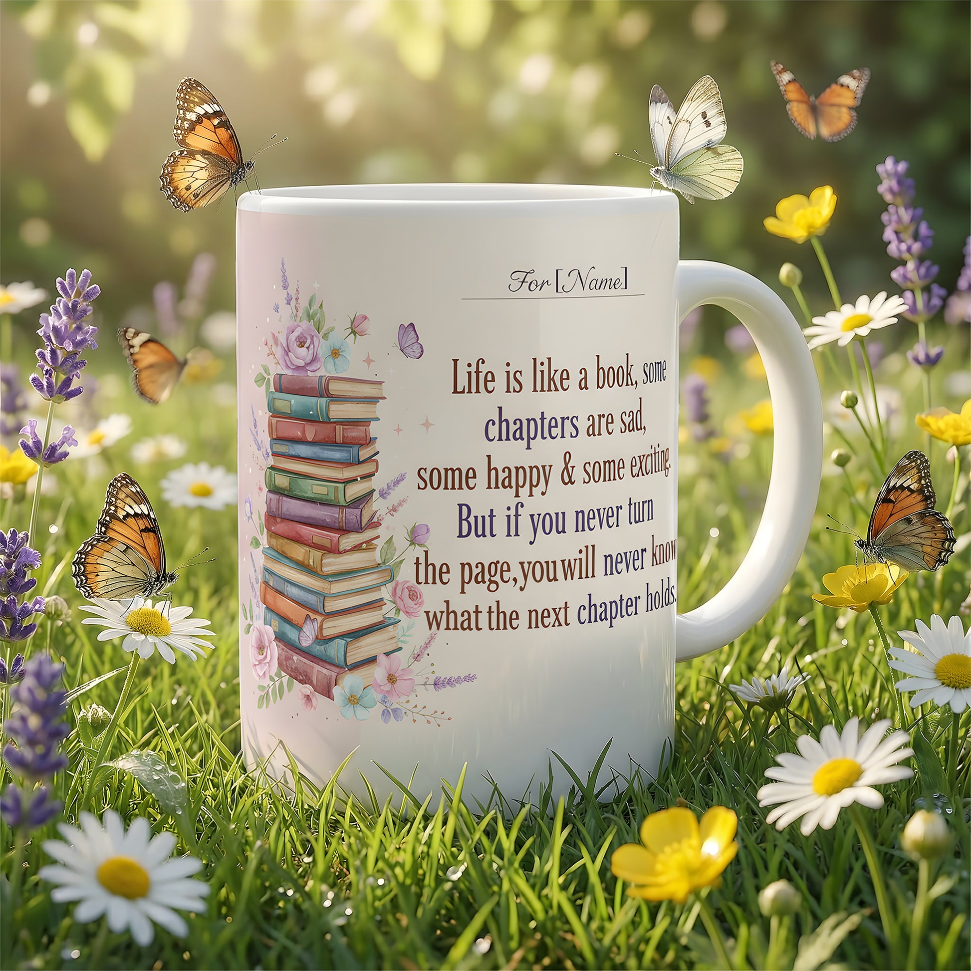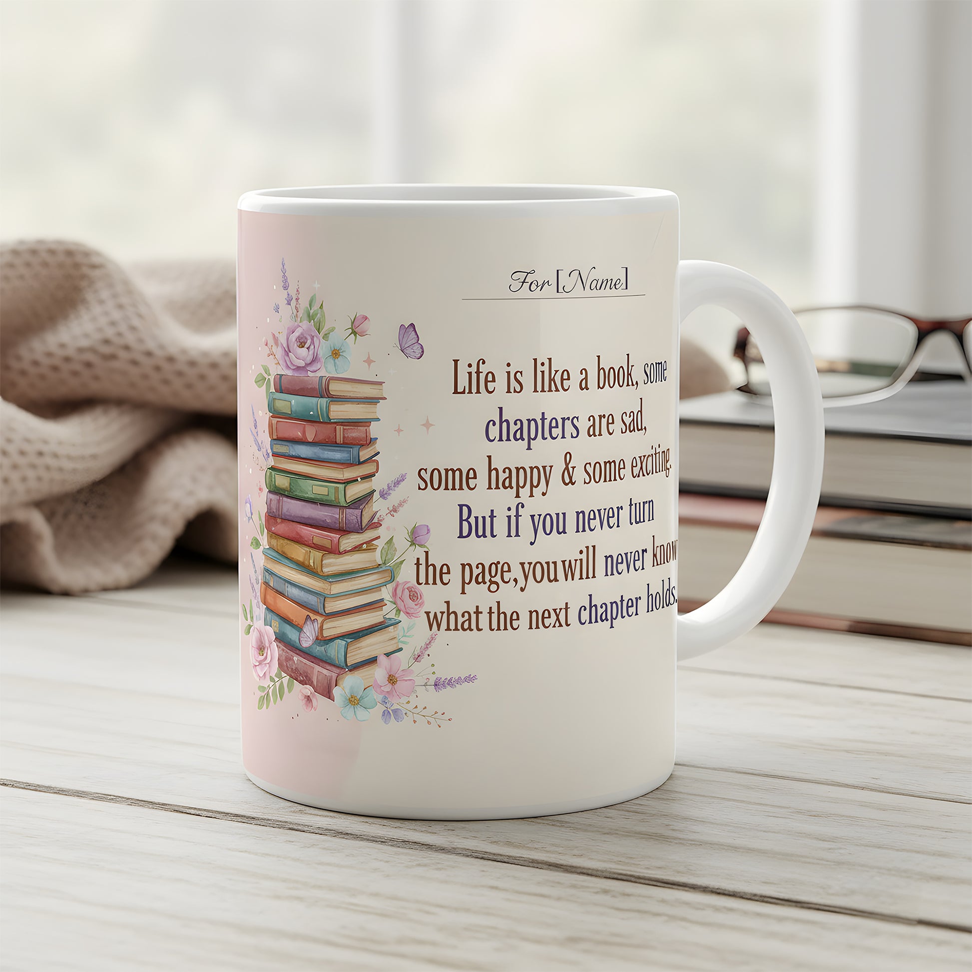 Life Is Like a Book Mug – Inspirational Reading Coffee Cup – Gift for Book Lovers, Teachers & Graduates | Mug 76