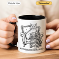 My Weekend Is Booked Mug – Vintage Cat Reading Coffee Cup – Book Lover Gift – Introvert Humor Mug – 11oz 15oz Ringer Mug |Mug 135
