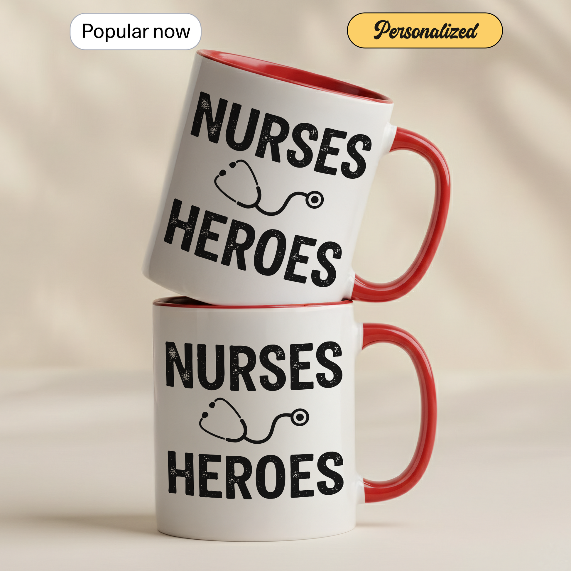 Nurses Are Heroes Mug – Nurse Appreciation Gift – Healthcare Worker Coffee Cup – RN Graduation Gift – 11oz 15oz Ringer Mug |Mug 126