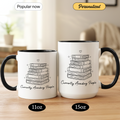 Cozy Reading Time Mug – Stack of Books Coffee Cup – Minimalist Book Lover Ringer Mug – Gift for Readers |Mug 98